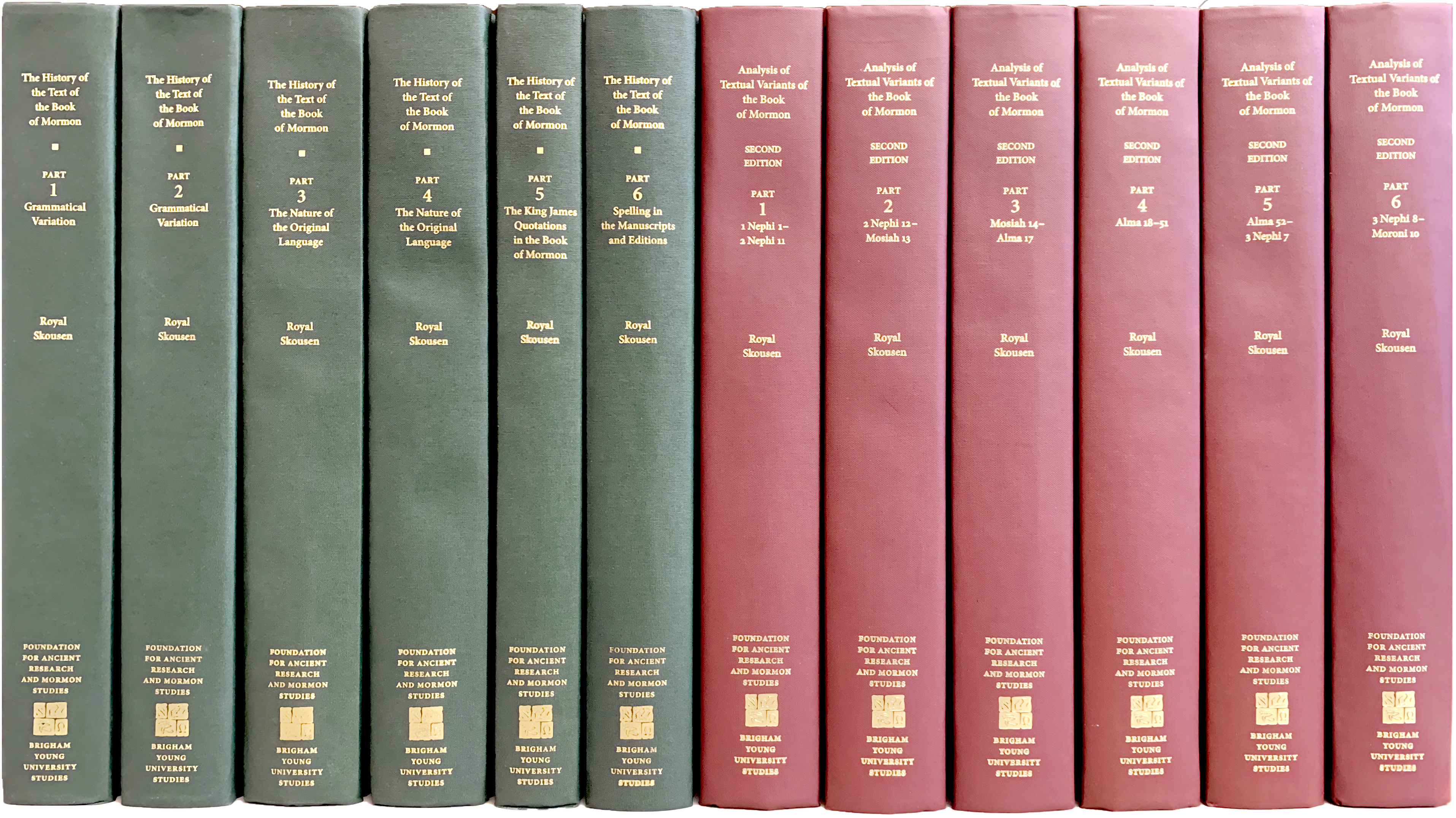 - Skousen, Royal. The History of the Text of the Book of Mormon: Part Eight, Textual Criticism of the Book of Mormon. Vol. 3 of The Critical Text of the Book of Mormon. Provo, Ut.: Foundation for Ancient Research and Mormon Studies and BYU Studies, forthcoming.