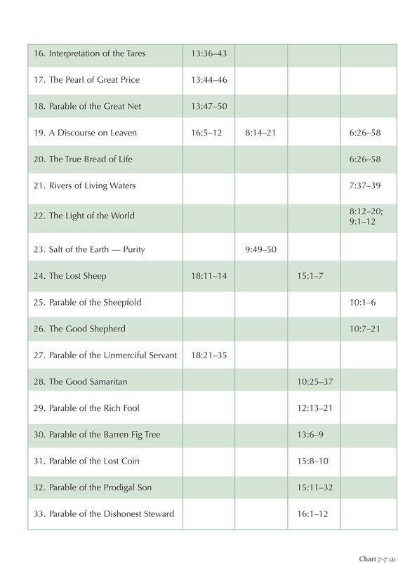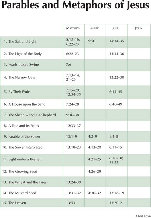 Chart 7-7: Parables and Metaphors of Jesus