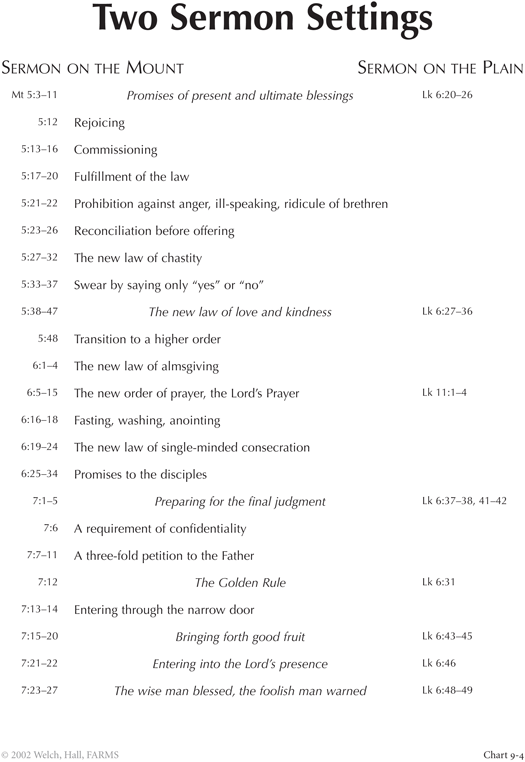 John W.Welch, Illuminating the Sermon at the Temple and Sermon on the Mount (Provo, Utah: FARMS, 1999), 221-26.