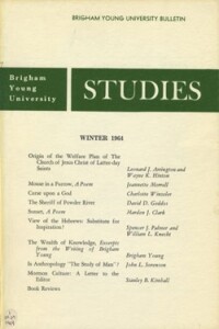 Learn about the great depression and what was originally called "Church Security Program" in Arrington and Hinton's "Origin of the Welfare Plan of The Church of Jesus Christ of Latter-day Saints." Palmer and Knecht show evidences against the implications that Joseph Smith plagiarized that Isaiah chapters in the Book of Mormon in "View of the Hebrews: Substitute for Inspiration?" Also read John L. Sorenson's article "Is Anthropology 'The Study of Man'?"