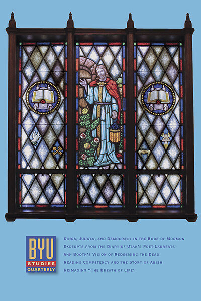 The cover of this issue features a unique stained glass window from an LDS meetinghouse in La Canada, California. It portrays Jesus Christ knocking on a door, with a kind expression that sends a message of invitation to all. The window also shows the sticks of Judah and Joseph, a dove of peace, gold keys, two hands gripping one another, and the all-seeing eye of God, all symbols of peace, authority, and covenants. These gospel-grounded principles are realized in the pages of BYU Studies Quarterly. First, Gregory Steven Dundas digs deep into the topic of kingship and democracy in the Book of Mormon and suggests that the change from kingship to a weaker government of judges contributed to the ultimate disintegration of the Nephites. Michael J. Call also looks at the Book of Mormon, showing how Abish and others function as model readers, exhibiting the traits and competencies that the Book of Mormon authors expected the future reader of their text to bring to their reading. Dana M. Pike asks if Latter-day Saints have correctly understood the meaning of the breath of life as it appears in ancient texts. Christopher Blythe places an early LDS convert’s vision in the context of the Saints learning about baptism for the dead. Poet Lance Larsen presents extracts from his journal, with an introduction by Casualene Meyer. These extracts give a glimpse into the inner life, a perspective that clarifies the creative process. A personal essay and several book reviews round out this issue.