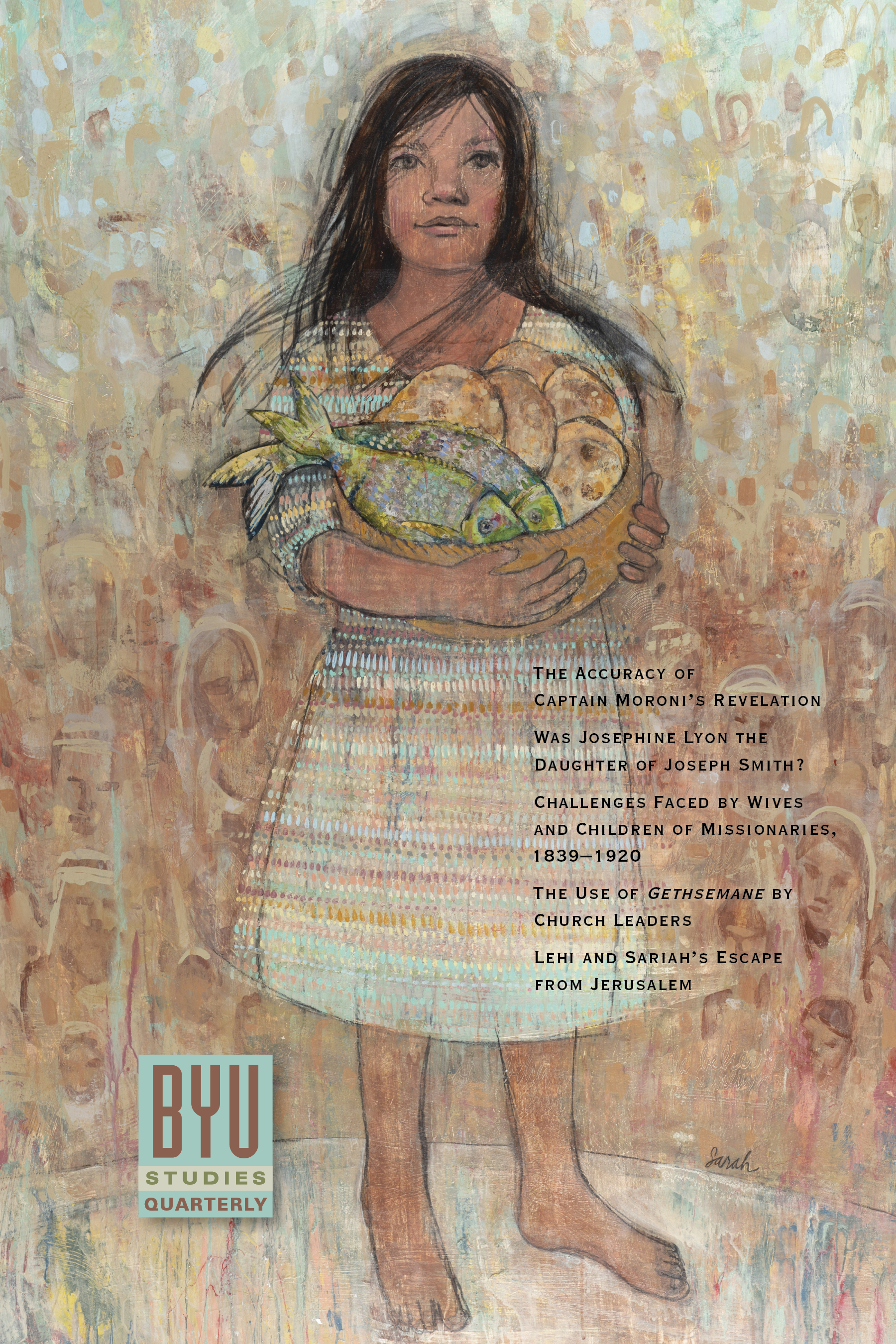 In this issue, Chad Orton tells what life was like for women and children who were left behind as their husbands and fathers served missions, 1839 to 1920. John Hilton and Joshua Barringer share their research on how general conference speakers used Gethsemane and follow themes that changed over time. Warren Aston uses clues from scripture, archaeology, and research on the ground to propose the route that Lehi’s family took from Jerusalem to Arabia. Ugo Perego reports his genetic testing to show that the story of Josephine Lyon being Joseph Smith’s daughter is likely incorrect. Duane Boyce looks carefully at Alma 60 to test whether Captain Moroni was mistaken about his call to governors to repent and sees that the question involves more people than just Pahoran. This issue also includes three essays, four poems, three book reviews, and three book notices. Beautiful artwork and poetry, She Believed, by Sarah Richards Samuelson, graces the cover.